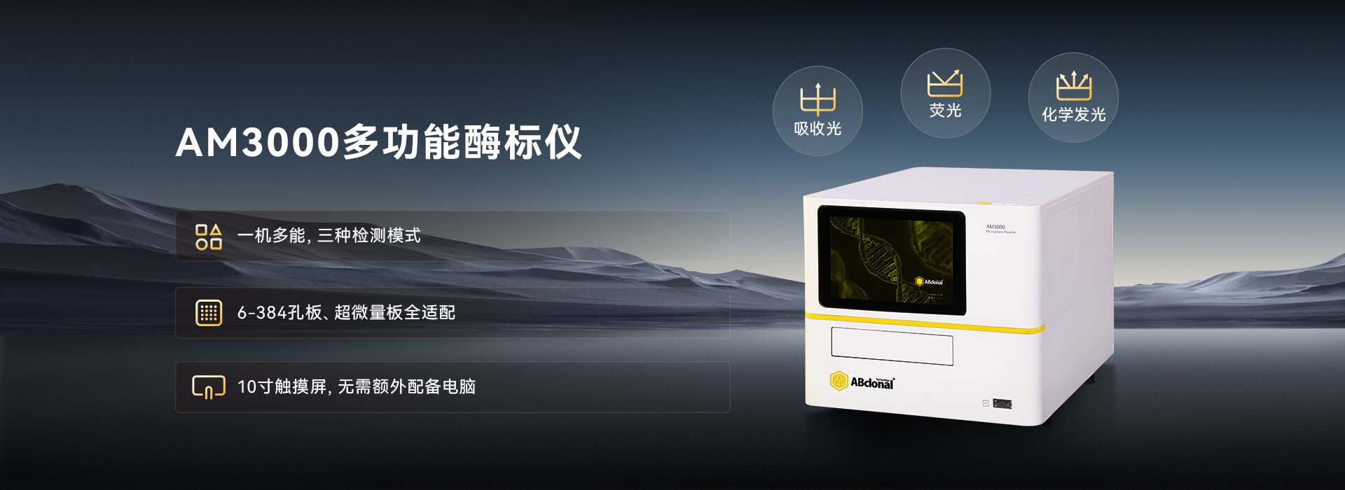 爱博科仪AM3000多功能酶标仪,是一款高性能的多功能微孔板检测系统,专为生命科学研究量身打造。兼顾简便性和可靠性,提升工作效率的同时获取高质量实验数据。