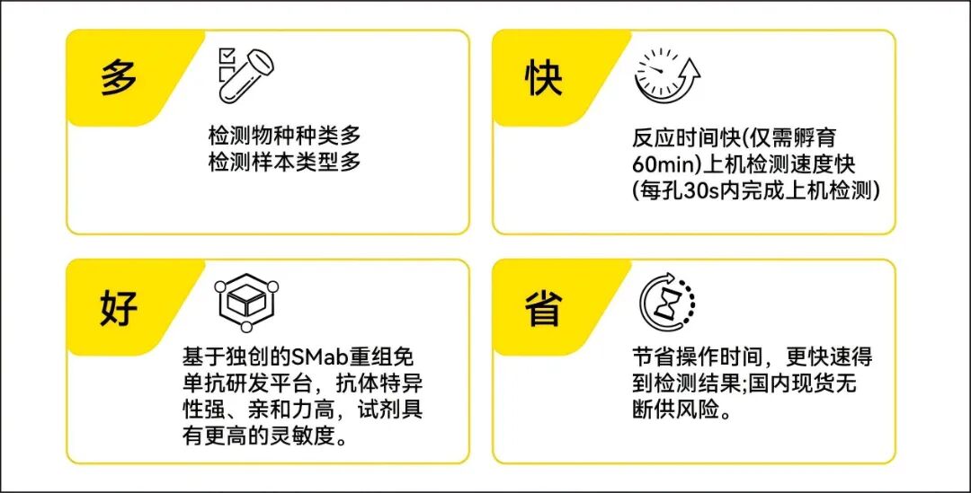 节约时间:从实验开始,到结果产出仅需不到120min(反应时间60min,每样本上机20-30秒,96样本仅需要小于50min)