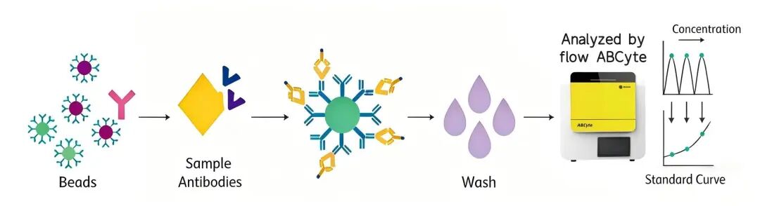 流式细胞术微球阵列(Cytometric Bead Array, CBA)是一种基于流式细胞仪的多重蛋白定量方法,可在单一标本中同时检测多个指标。其核心是通过荧光标记微球与抗体结合,精准捕获目标蛋白。微球具有特定荧光标识,允许多重分析。