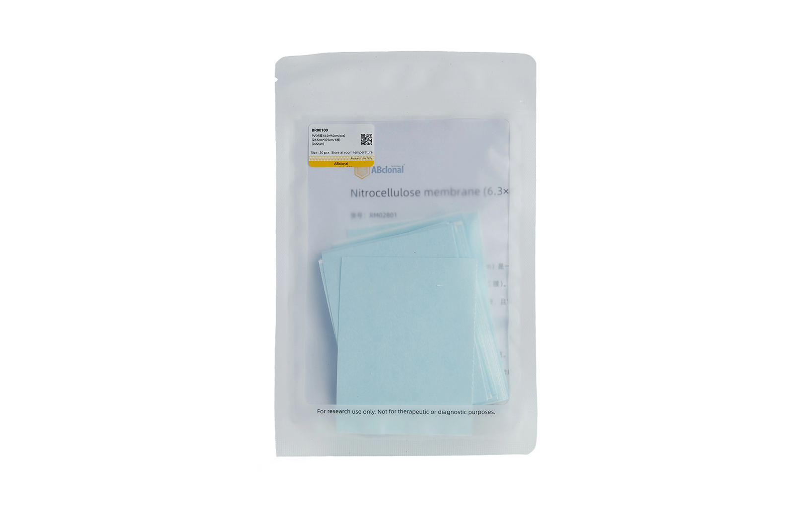 | BR00100 | Polyvinylidene fluoride (0.22 μm) {PVDF膜 (6.0×9.0cm/pcs)(26.5cm*375cm/1卷) (0.22 μm)} | 20 pcs / 1 卷 | Store at room temperature. |
