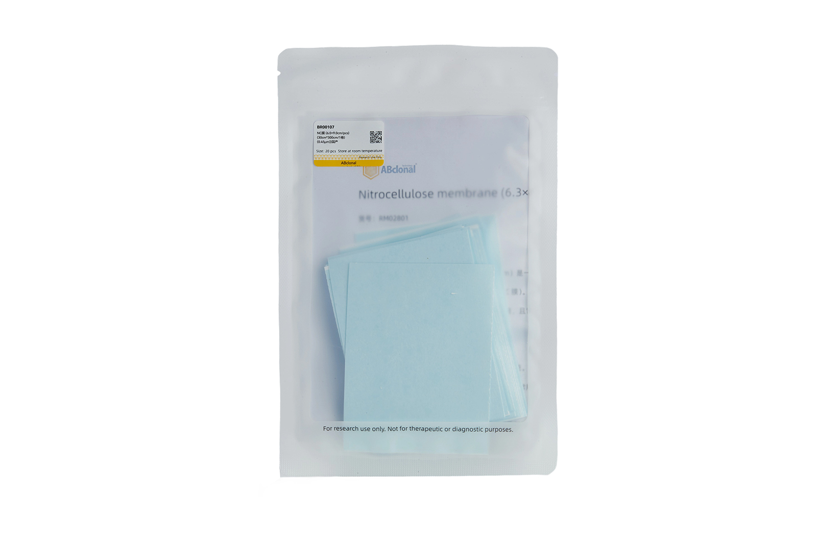 | BR00107 | Nitrocellulose membrane (0.45μm){NC膜 (6.0×9.0cm/pcs)(30cm*300cm/1卷) (0.45μm)}国产 | 20 pcs / 1 卷 | Store at room temperature. |
