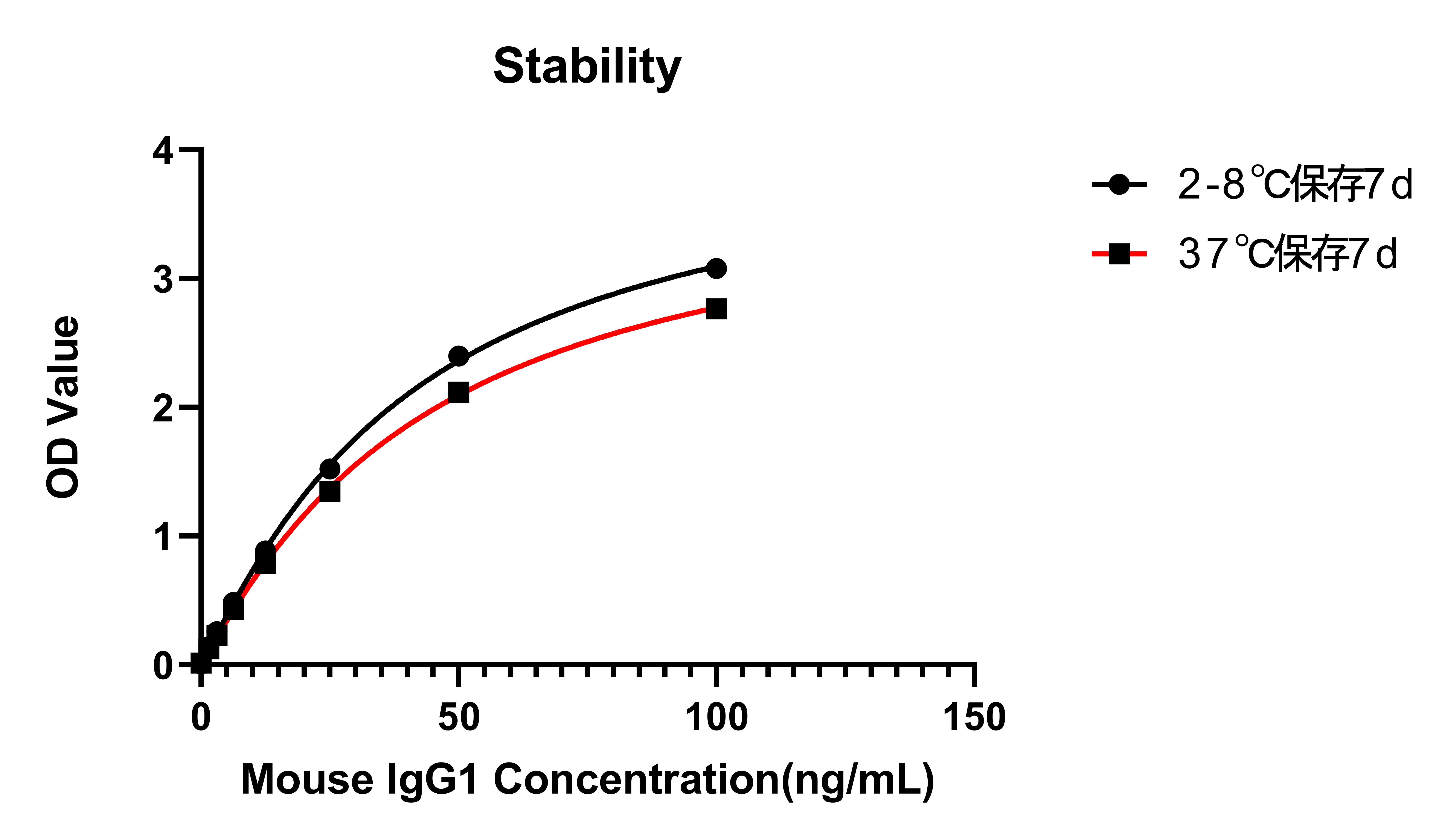 Placed at 37°C for 7 days, the stability of the standard curve all conform to CV <10%.
