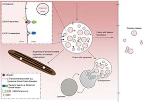 外泌体这一术语第一次被描述是在30年前,是一种能被大多数细胞分泌的直径约为40-100nm的微小膜泡,具有脂质膜结构,内部包裹了蛋白、mRNA和microRNA等物质。在细胞中还存在其他类型的微泡,如凋亡小体和核外颗粒物,分别促进细胞凋亡和质膜脱落。尺寸跟外泌体相当,均含有一些细胞质基质成分。它们是不同的囊泡,显著的区别就是它们最重要的功能不同,这一点经常被忽略。