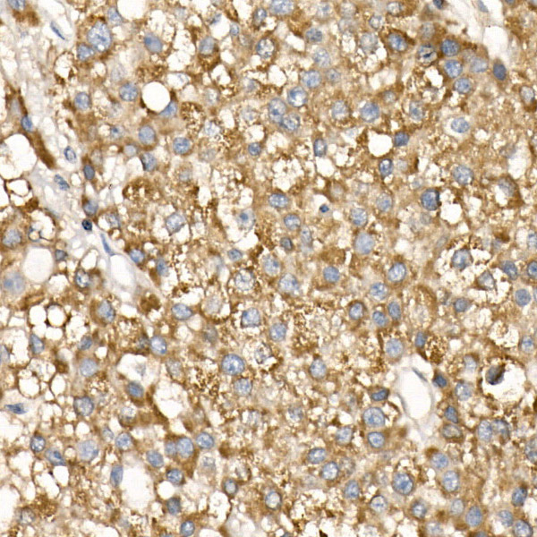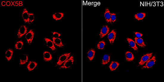 Confocal imaging of NIH/3T3 cells using [KO Validated] TBK1/NAK Rabbit mAb (A3458,at dilution of 1:100) (Red). The cells were counterstained with α-Tubulin Mouse mAb (AC012,dilution 1:400) (Green). DAPI was used for nuclear staining (blue). Objective: 100x.