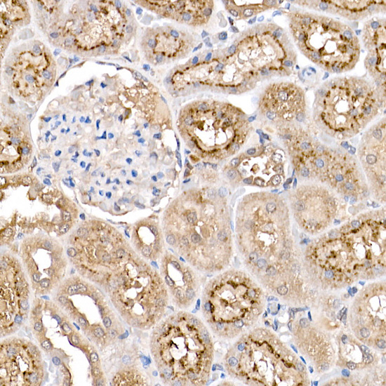 The STORM super-resolution (SR) imaging of U-2 OS cells using TOM20 Rabbit mAb (A19403, ABclonal) at dilution of 1:100 with 3% paraformaldehyde (PFA) +0.1% glutaraldehyde (GA) fixation. The immunostaining was performed by Full Automatic Immunofluorescence Workflow System (Workflow Ultra300, Nano-Micro imaging, China). Image was performed with Single-Molecule Localization Super-Resolution Microscopy (STORM Ultra300, Nano-Micro imaging, China). We acknowledge Ningbo Nano-Micro imaging Biotechnology Co., Ltd. (宁波纳微成像生物科技有限公司) in SR image processing and kindly providing this image.