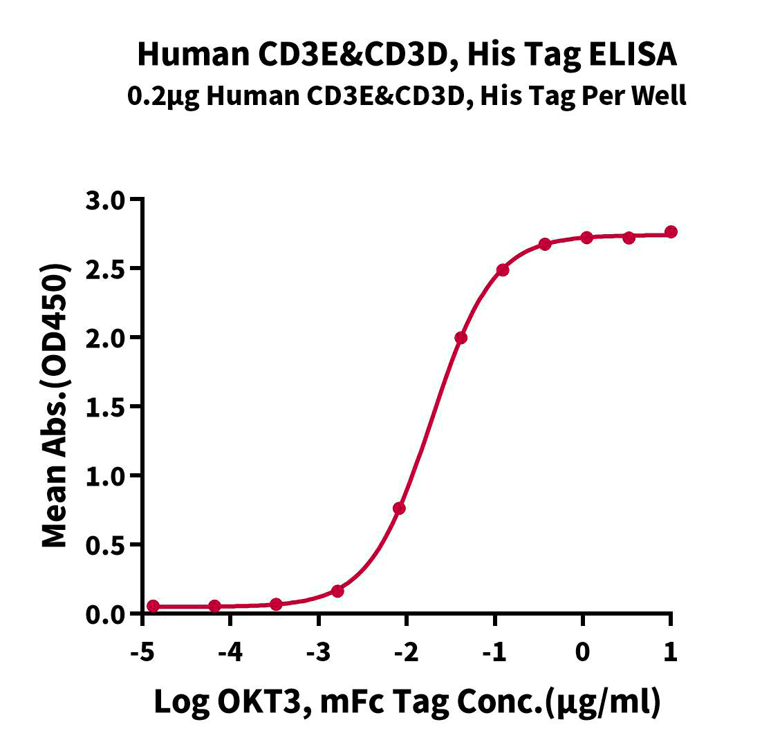 | RP00623 | CD3E&CD3D/CD3 epsilon&CD3 delta | Human | HEK293 cells | Asp23-Glu120(CD3E) & Phe22-Ala105(CD3D) | C-His | ![]() ![]() ![]() ![]() ![]() | |